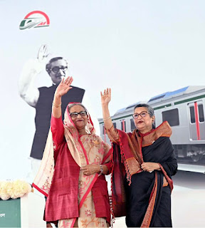 Prime Minister Sheikh Hasina inaugurates the metro rail at the playground of sector-15 (C-1 Block) in the capital’s Uttara at 11:00 am by unveiling a plaque. Prime Minister Sheikh Hasina inaugurated a portion of the 20-kilometer (12.427-mile) urban rail project known as Line 6 Uttara to Agargaon from Uttara sector-15 playground.